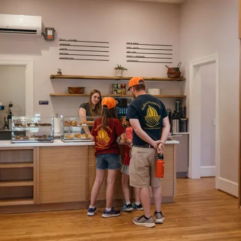 Pets are not allowed inside House of Many Porches Market, in any water play areas, or on the playgrounds.